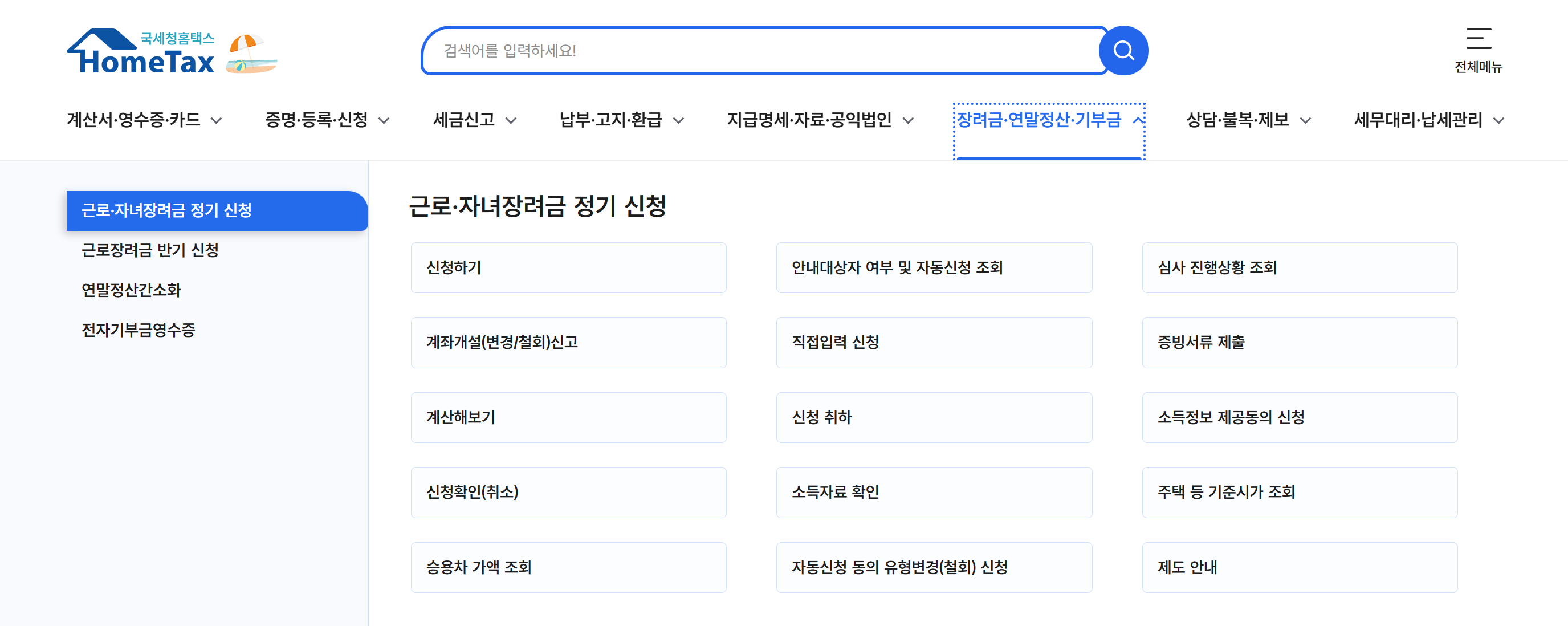 근로장려금 신청하러가기>> 홈택스 바로가기